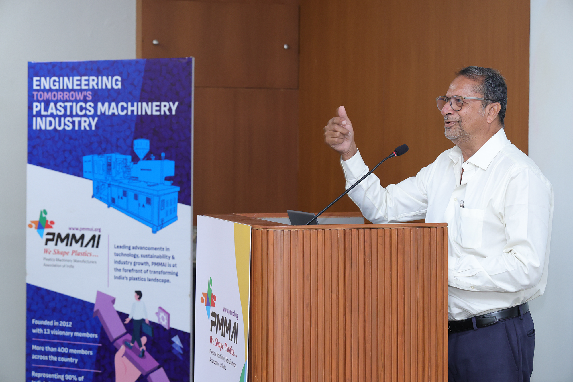 Program was started with a welcome note by Mr. Tushar Parikh, member PMMAI steering committee. A detailed presentation was given by PMMAI Chairman Shri Mahendra N Patel about Plastics Machinery Industry, opportunities & threats for the industry. Mr. Patel also explained the vision, mission behind the formation of PMMAI.